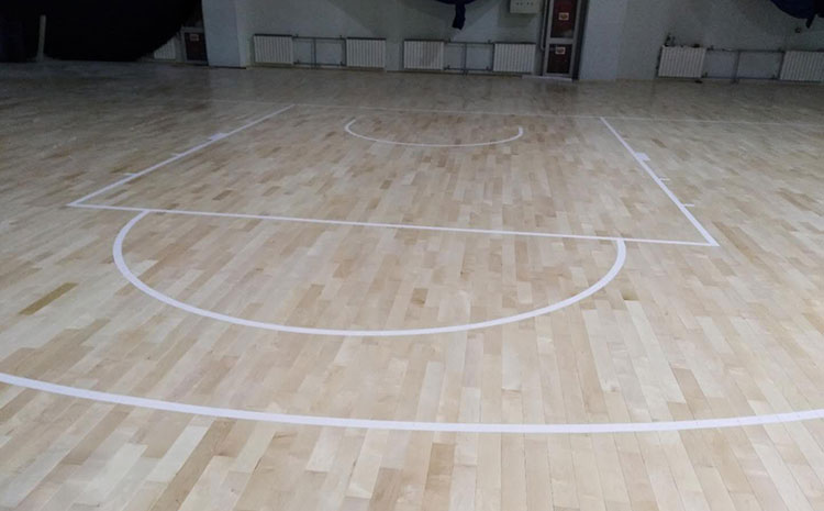 籃球館地板,實木運動地板不宜用大量的水沖洗,或遭受雨淋或受潮。特別是當實木運動地板通常清洗,使用不滴擦地板的抹布或拖把。