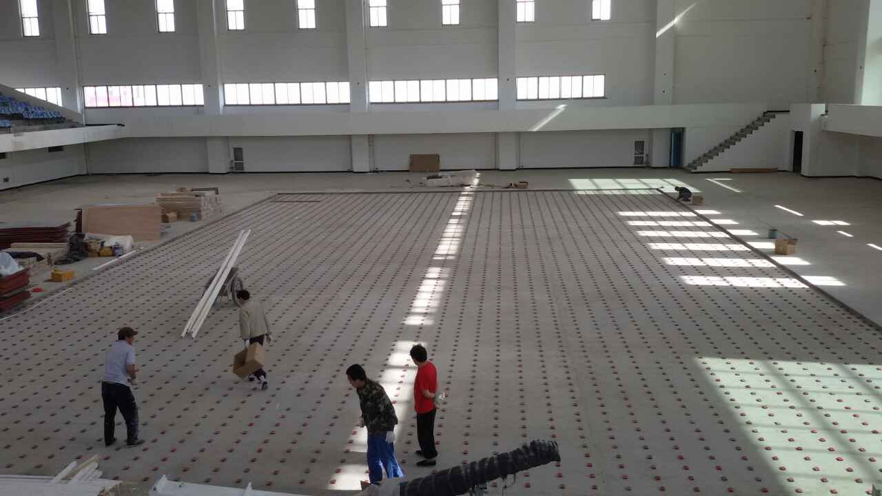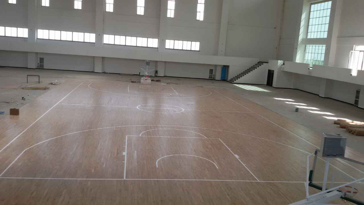 近期,我公司為甘肅省張掖市民樂縣全民健身中心鋪設(shè)體育木地板,工程選用柞木A級木地板,規(guī)格20mm*61-66mm*1800mm,懸浮式單龍骨結(jié)構(gòu),鋪設(shè)面積為650余平方米。