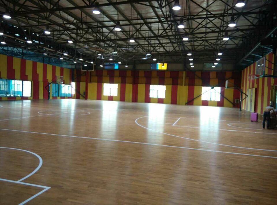 籃球館體育地板與民用木地板之間存在很大差別,它的承重負(fù)荷及牢固化使用壽命必須達(dá)到比賽及訓(xùn)練的要求,如活動籃球架及相關(guān)體育設(shè)施在體育木地板上移動時,體育木地板的表層和結(jié)構(gòu)不能因此遭到破壞等,因此地板結(jié)構(gòu)復(fù)雜,層次較多,對材料的物理及力學(xué)性能要求較高。此外,還有諸如地板的耐磨性、耐污染性,漆膜的硬度,要求體育地板表層不易起泡,從避免反光的考慮出發(fā)對色差有嚴(yán)格的控制等品質(zhì)的細(xì)節(jié)方面要求。